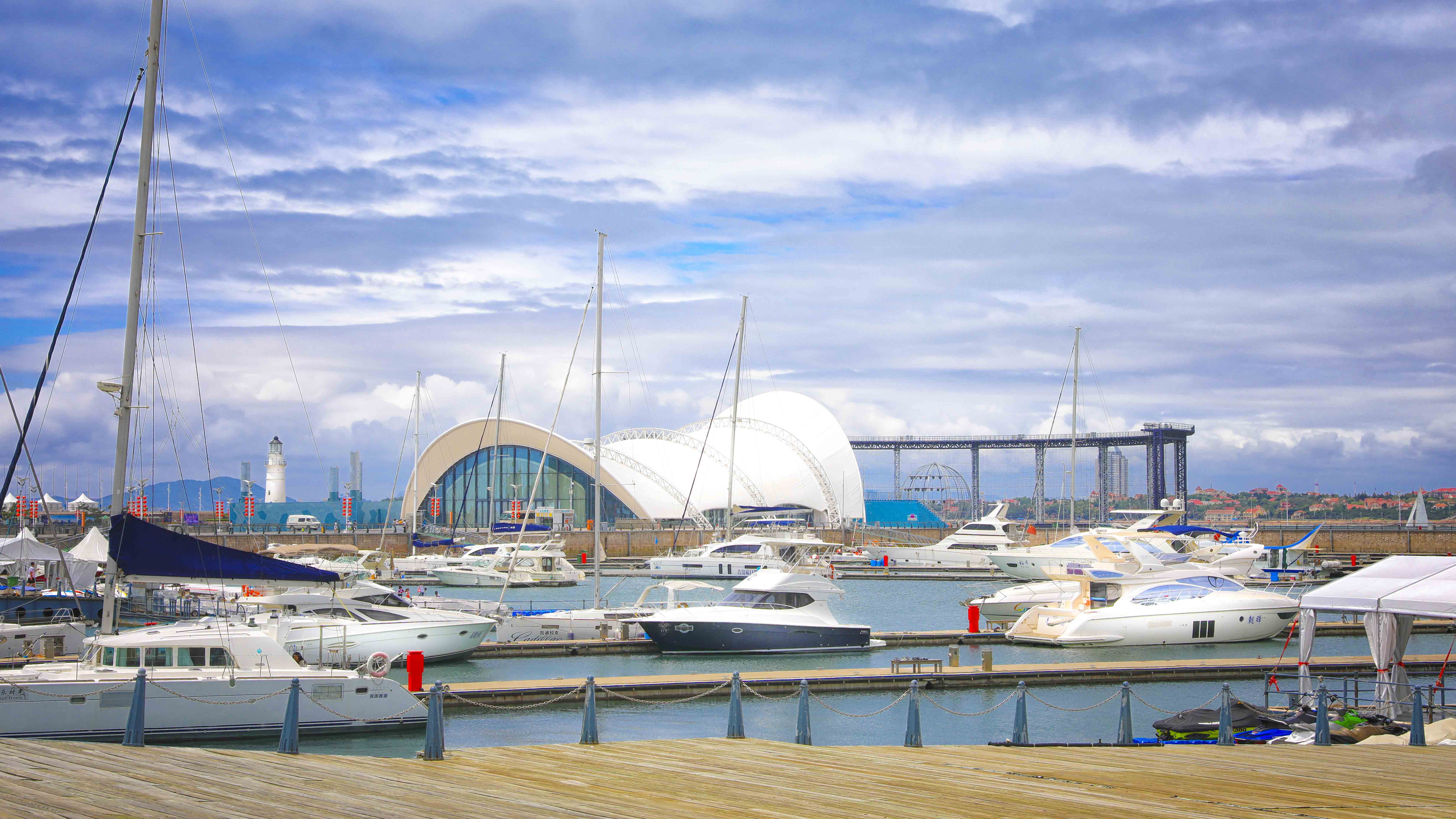 本項目在保留原有建筑主體結構的基礎上,結合本次會議活動的相關需求,對其規(guī)模、形象、功能進行改造提升。主題材料采用輕盈的鋼結構與膜結構,造型宛如海浪中靈動的風帆,彰顯青島這座海洋名稱、帆船之都的獨特魅力。