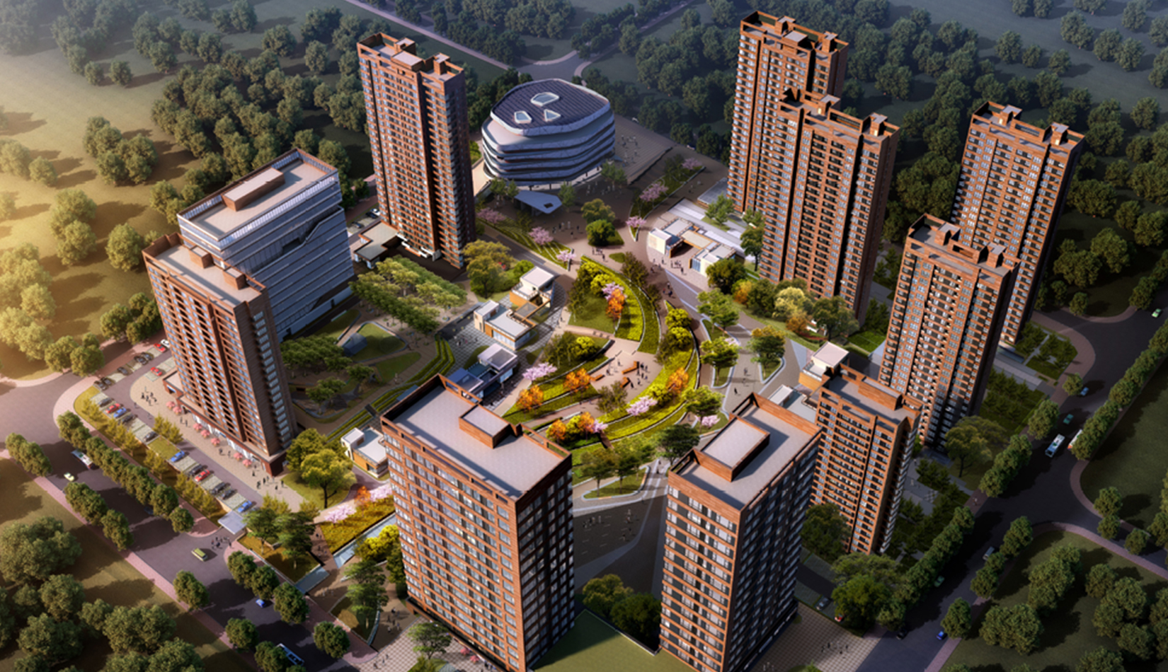 規(guī)劃布局在現(xiàn)有景觀基礎(chǔ)上進(jìn)行延伸,在重要景觀帶上設(shè)置公共功能,造型與現(xiàn)有德國中心呼應(yīng),靠近中間廣場的混合住宅設(shè)計(jì)中融入綠色理念,既達(dá)到景觀帶到建筑群組的滲透,又達(dá)到建筑內(nèi)部的滲透,真正做到人與自然融合,建立了一條“城市紐帶”,利用周邊現(xiàn)有資源(河洛埠水庫),通過連橋、綠地和廣場將不同功能,不同高度的公共區(qū)域串聯(lián)起來,從而形成一個(gè)結(jié)構(gòu)明晰,功能復(fù)合又互通互聯(lián)的文化交流城。