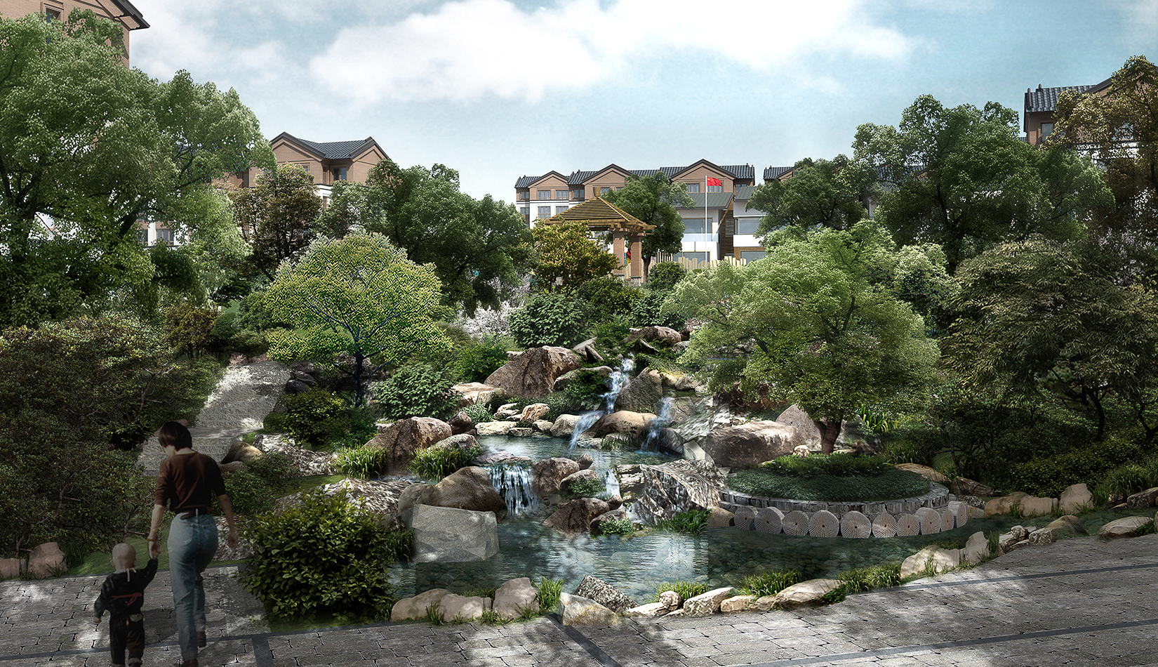 以“鄉(xiāng)村振興” 為背景,以“藏馬山居生活”為目標(biāo)核心,項目把東方田園與住區(qū)生活融為一體、貫穿自然生態(tài)、海綿城市的設(shè)計理念。景觀設(shè)計挖掘藏馬山的特色文化,延續(xù)當(dāng)?shù)鼐G色生態(tài)、山野趣味的自然風(fēng)貌,通過場景化的展示,融入到景觀設(shè)計中,打造特點鮮明、各有特色的入口體驗、商業(yè)街區(qū)、山居生活三大板塊。