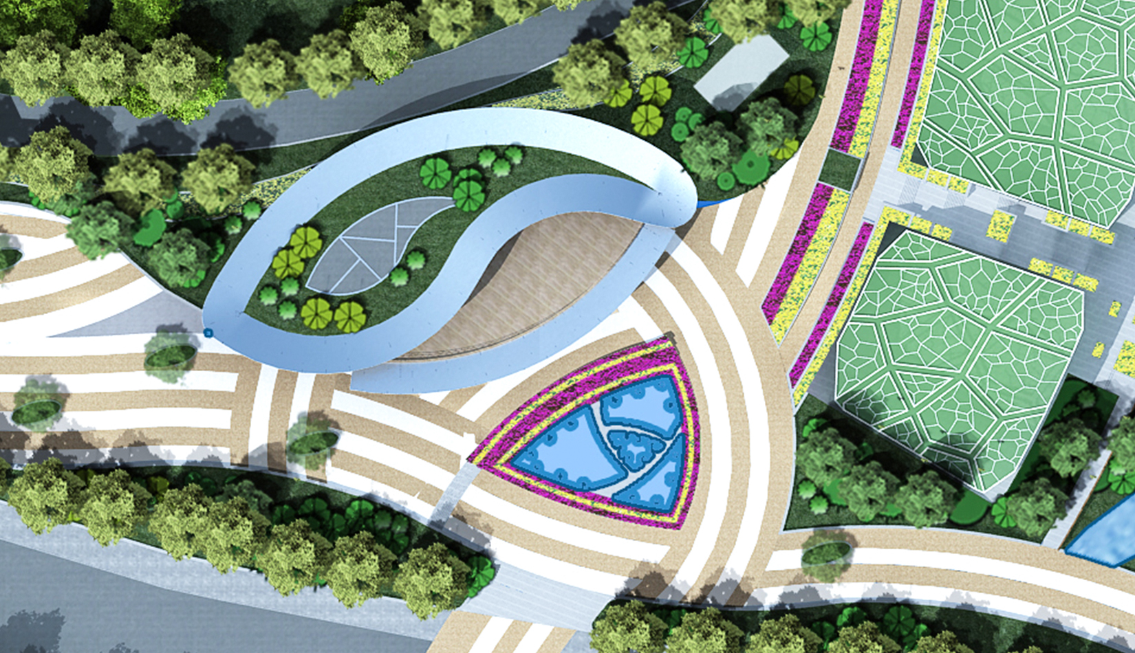本案設(shè)計構(gòu)思“一花一世界”。月季、玫瑰,都屬于薔薇科薔薇屬的植物,但他們屬于不同的種。