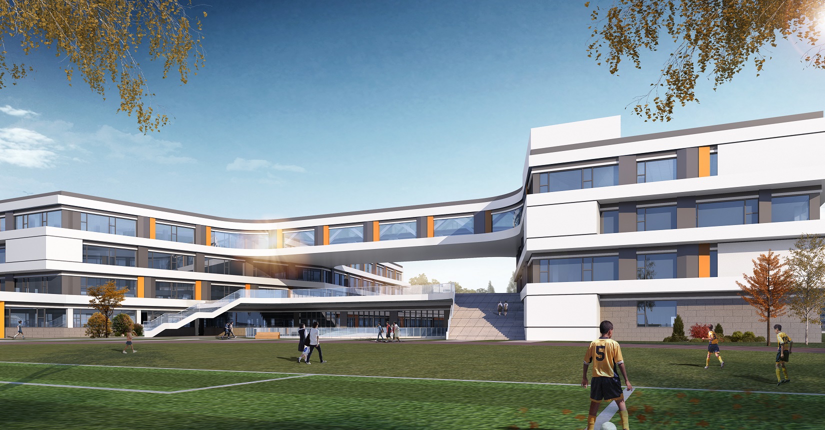 項(xiàng)目設(shè)計(jì)以“書籍”和“階梯”為靈感,將教學(xué)樓以退臺及錯(cuò)落的形式展示“書籍”和“階梯”的理念,設(shè)計(jì)現(xiàn)代化“書本”校園,希望學(xué)生們在讀書中成長。
